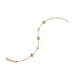 • Red gold bracelet with three green round tourmalines totalling 1.17 ct as well as two brilliant-cut diamonds totalling 0.13 ct.