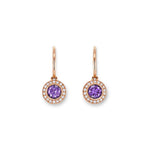 Red gold drop pierced earrings with two violet round amethysts totalling 0.90 ct as well as 36 brilliant-cut diamonds totalling 0.11 ct.