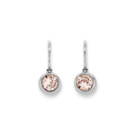 White gold drop earrings with two pink round morganites totalling 1.59 ct.