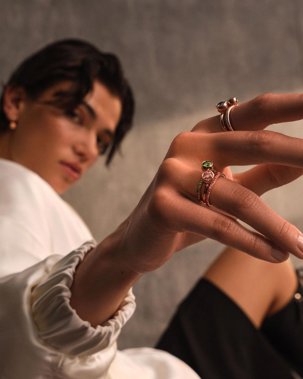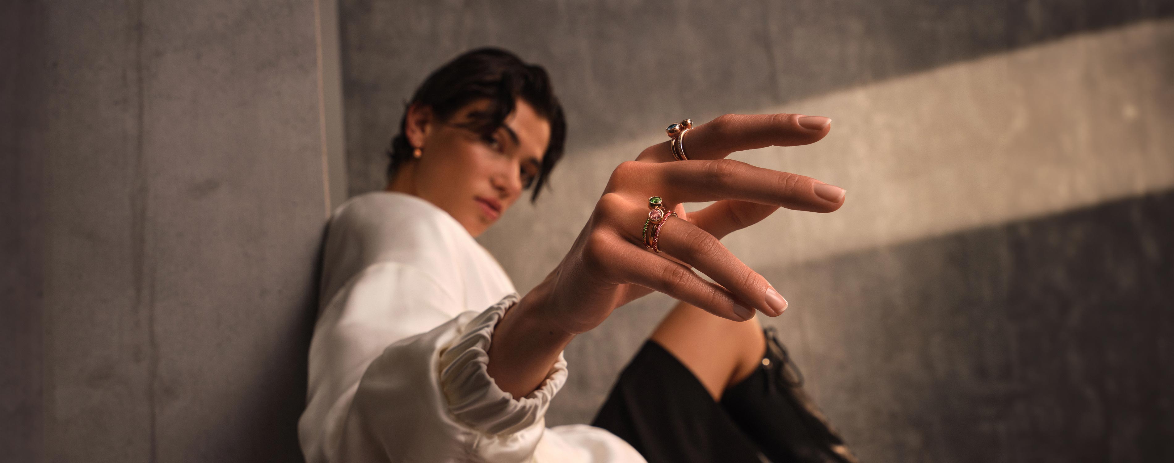 Experience urban sophistication with Sparks rings, a vibrant fusion of gemstones reflecting the city lights. Each ring is a symbol of your personal story, carrying a deep meaning.