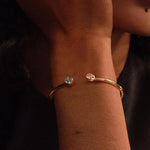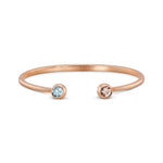 Red gold bangle with a light blue round aquamarine, 0.68 ct, as well as a pink round morganite, 0.73 ct.